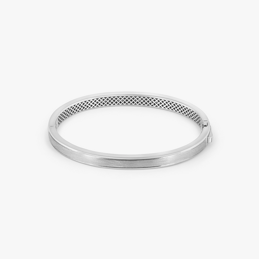 Buckingham Rope Hinge Cuff Bangle in Rhodium Plated Silver