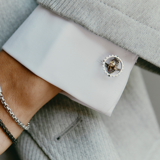 The Mechanical collection is about gears, skeletons, dials, cogs, and all the inner workings of a watch. This collection and, in particular, the square gear cufflink has become synonymous with the Tateossian brand name. Whether the cufflink comprises of vintage elements, or functioning new movements, the objective is to show as much of the intricacies of watches to the naked eye or offer a fully functioning watch as a cufflink. The designs are unique and are bound to be a conversation piece.