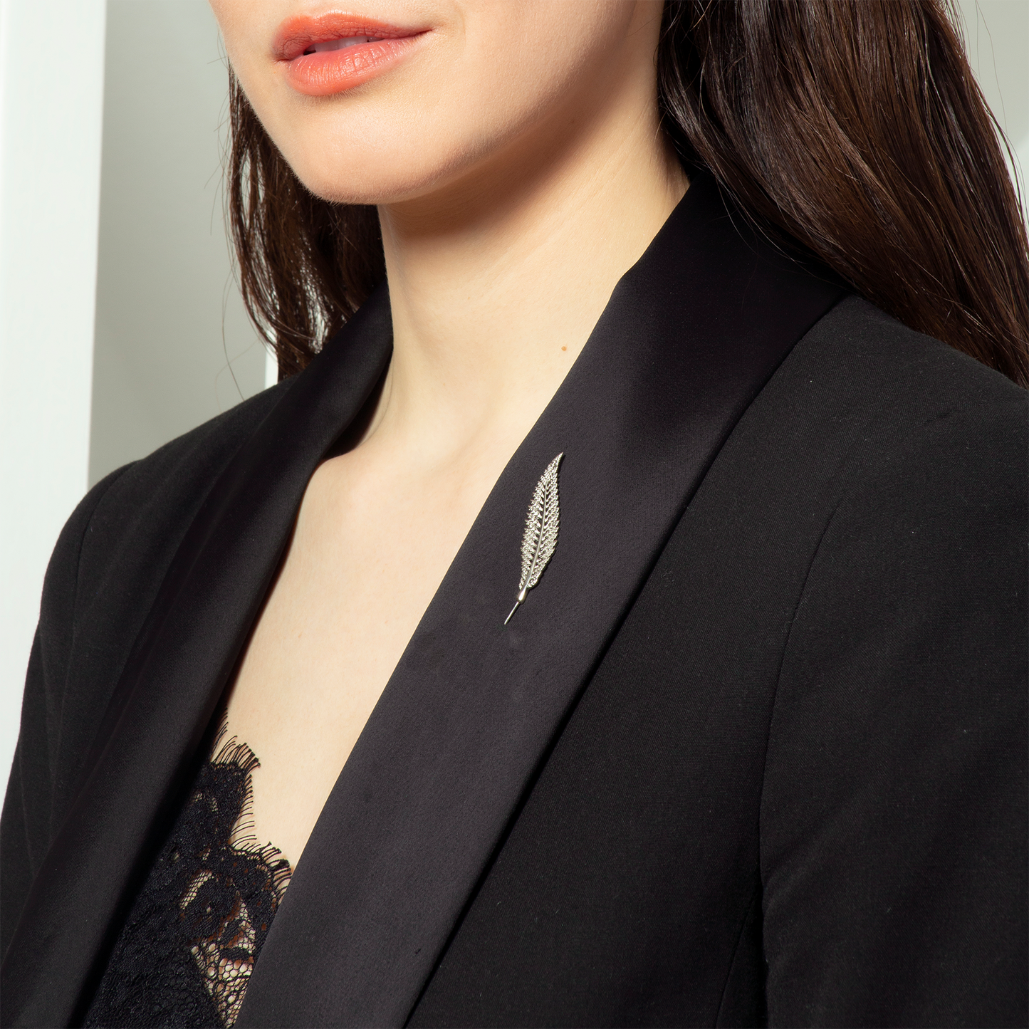 Fern Leaf Lapel Pin In Palladium Plated