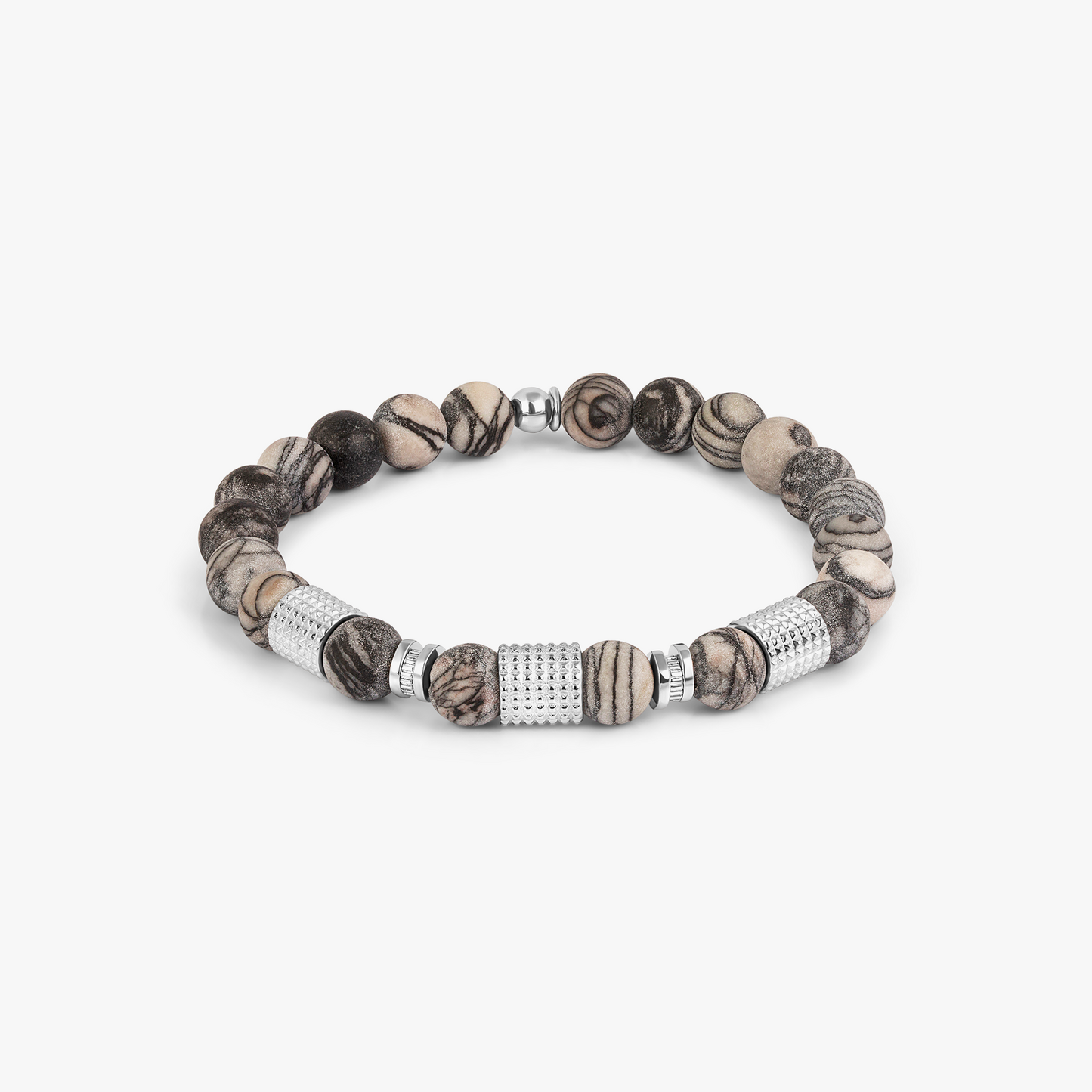 Giza Tubo Semi-Precious BraceletRhodium Plated Sterling Silver With Spiderweb Jasper
