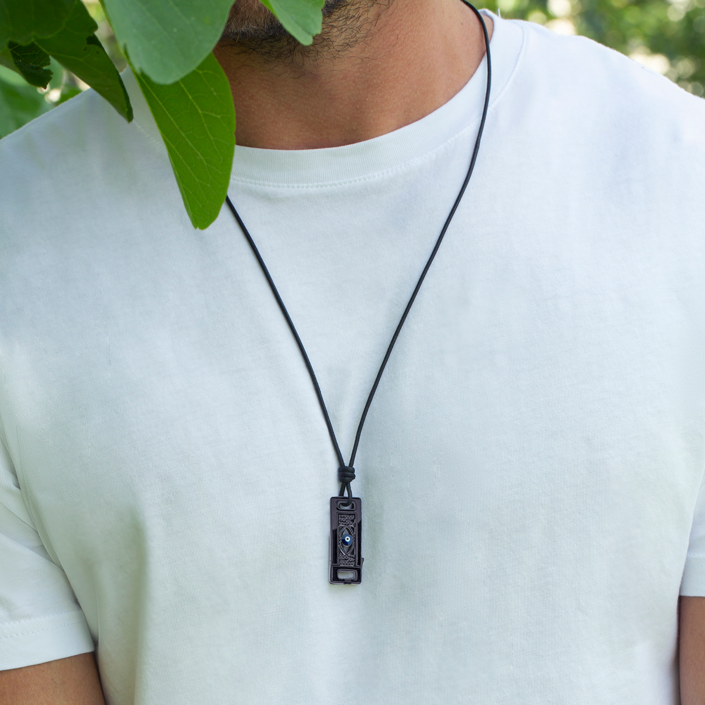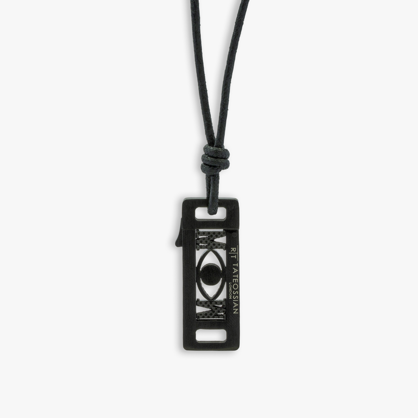 Grapheme Personalised Cord Necklace Pendant in IP Plated Stainless Steel with Black Enamel