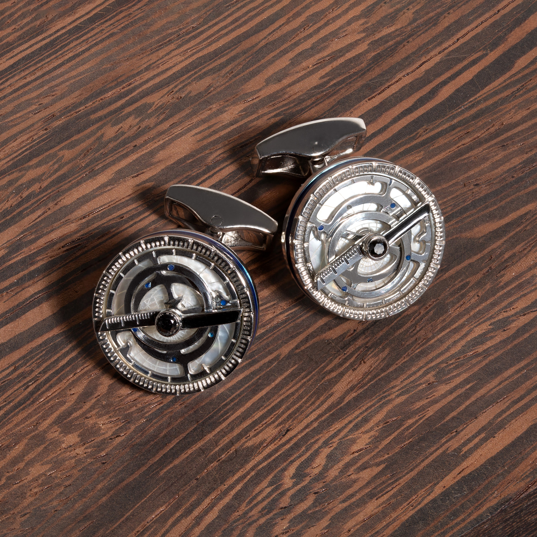 Rotating Astrolabe CufflinkWhite MOP With Swarovski Crystals