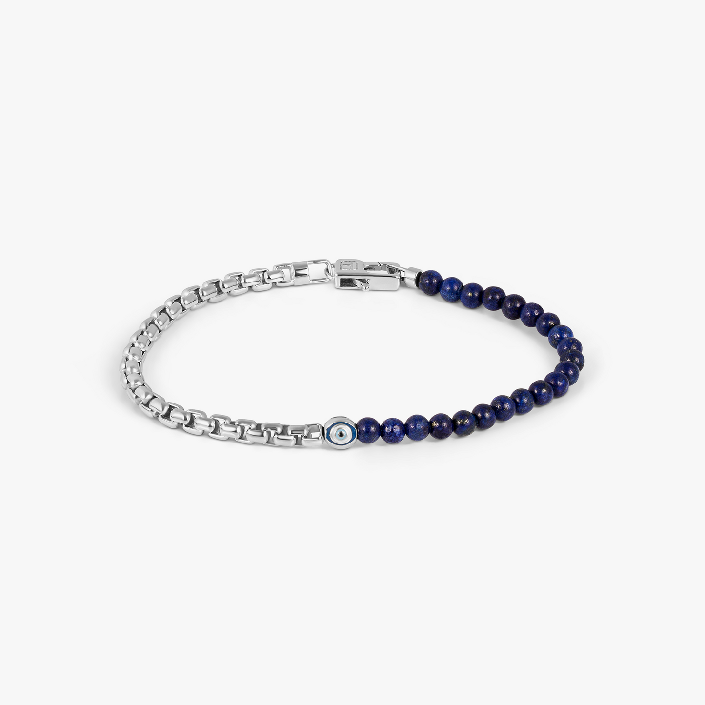 Sennit Box Evil Eye Bracelet In Rhodium Plated Sterling Silver With Lapis