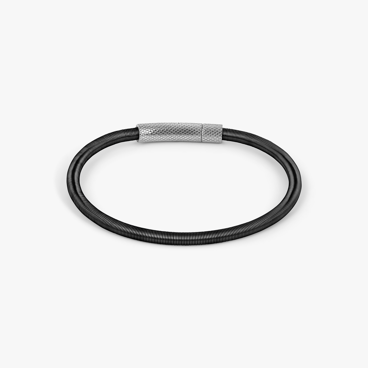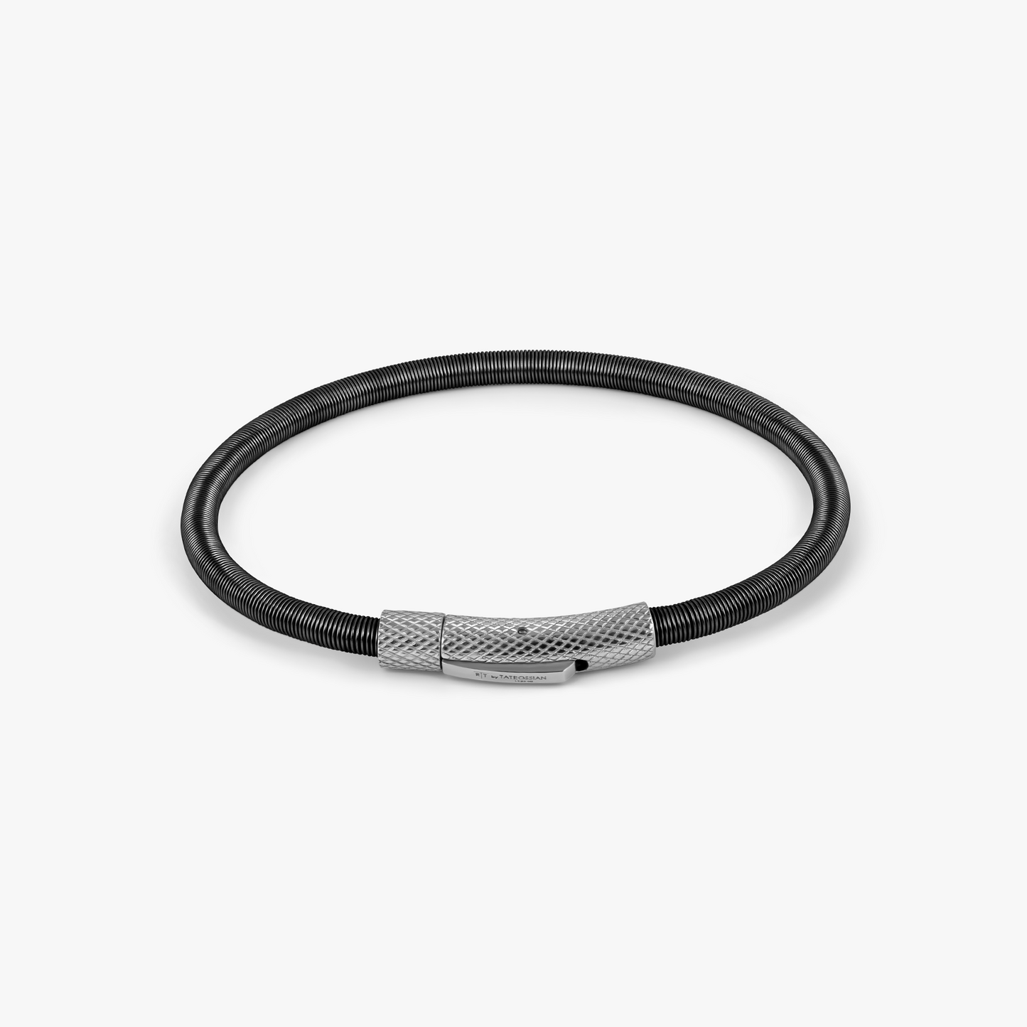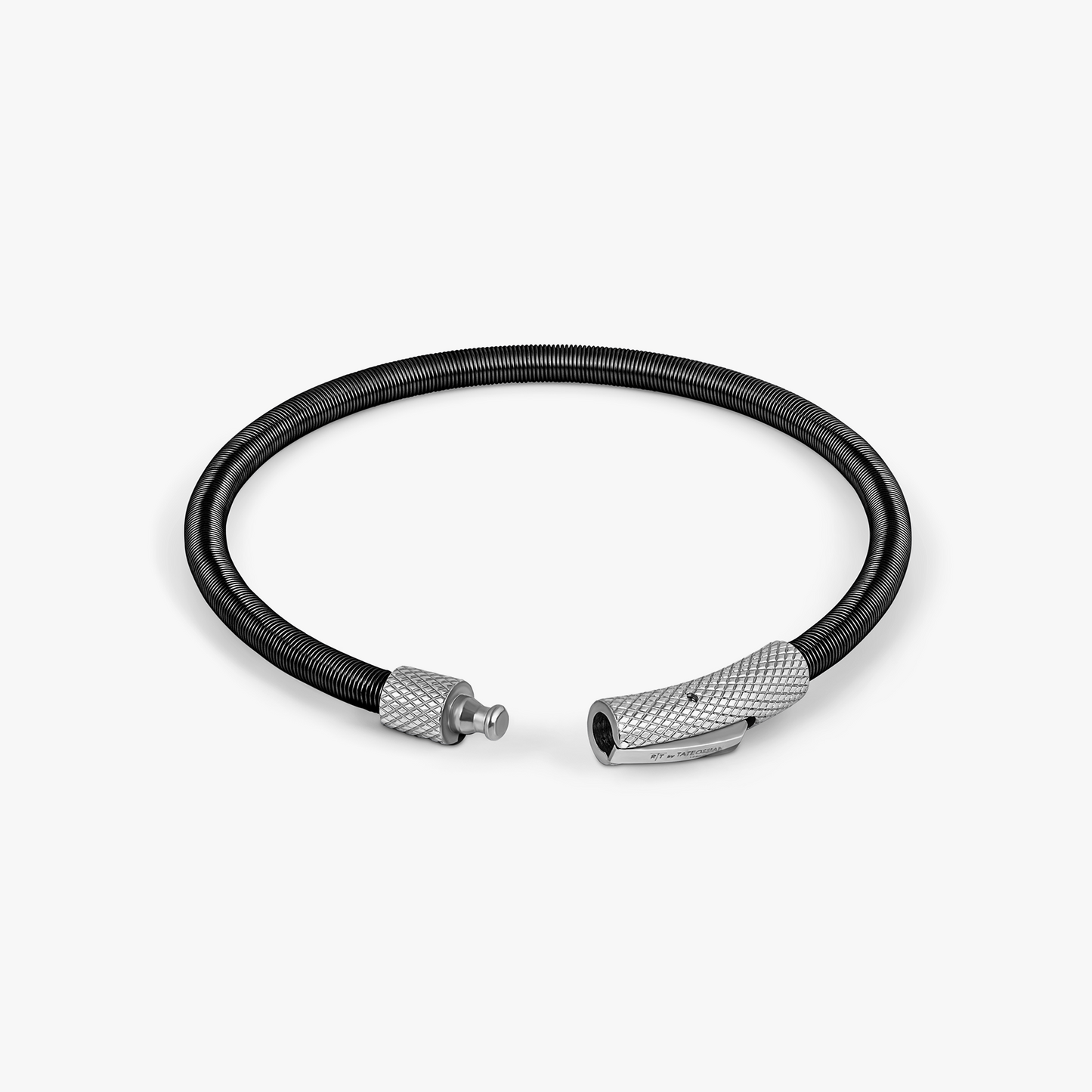 Seta Etched Click Nylon Bracelet in Stainless Steel with Black Coated Wire