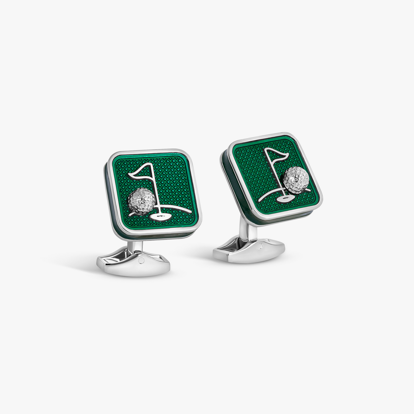 Sports Ice Golf CufflinksPalladium Plated with Green Enamel