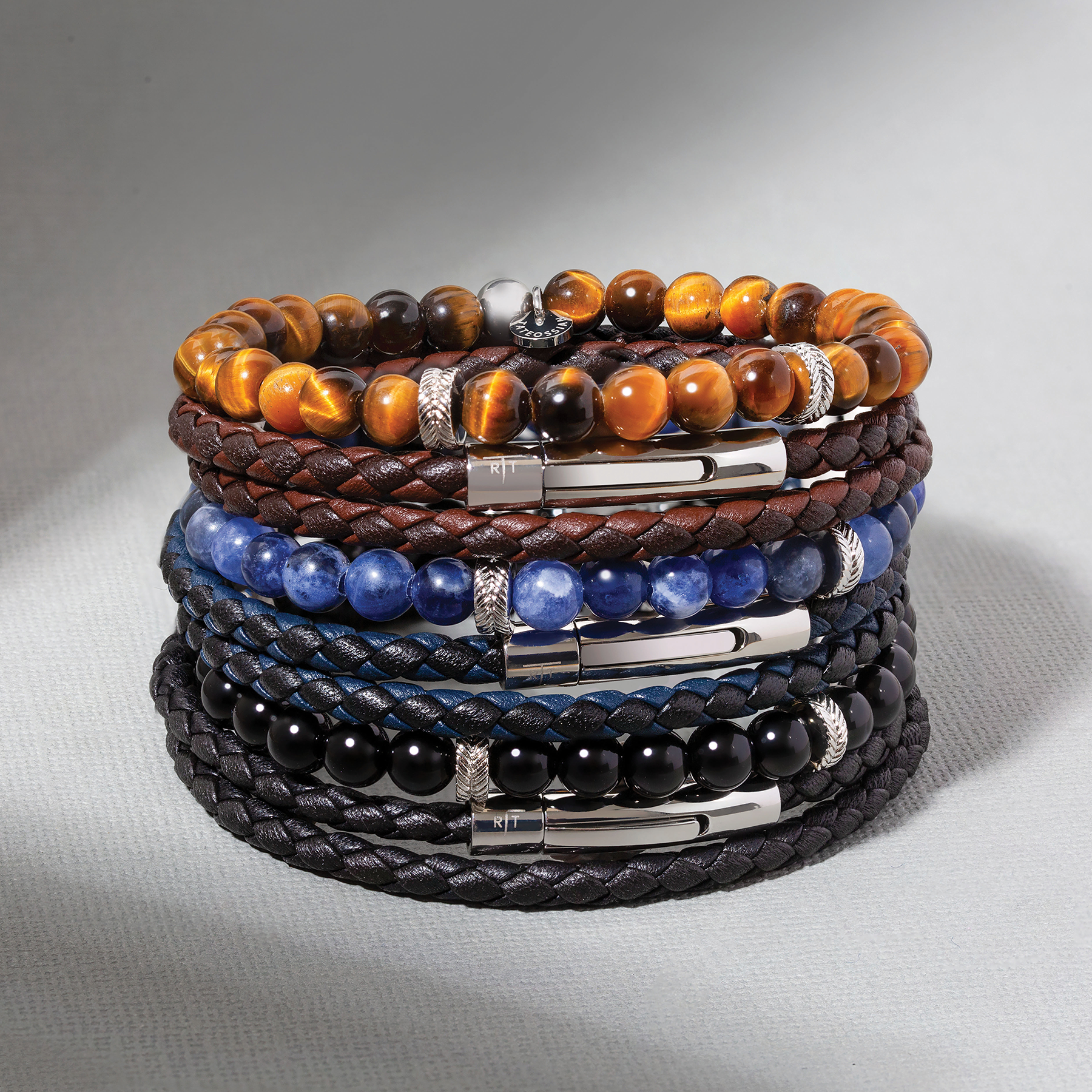 Stacked Multi-Layer Mixed Bracelet In Sodalite and Navy leather