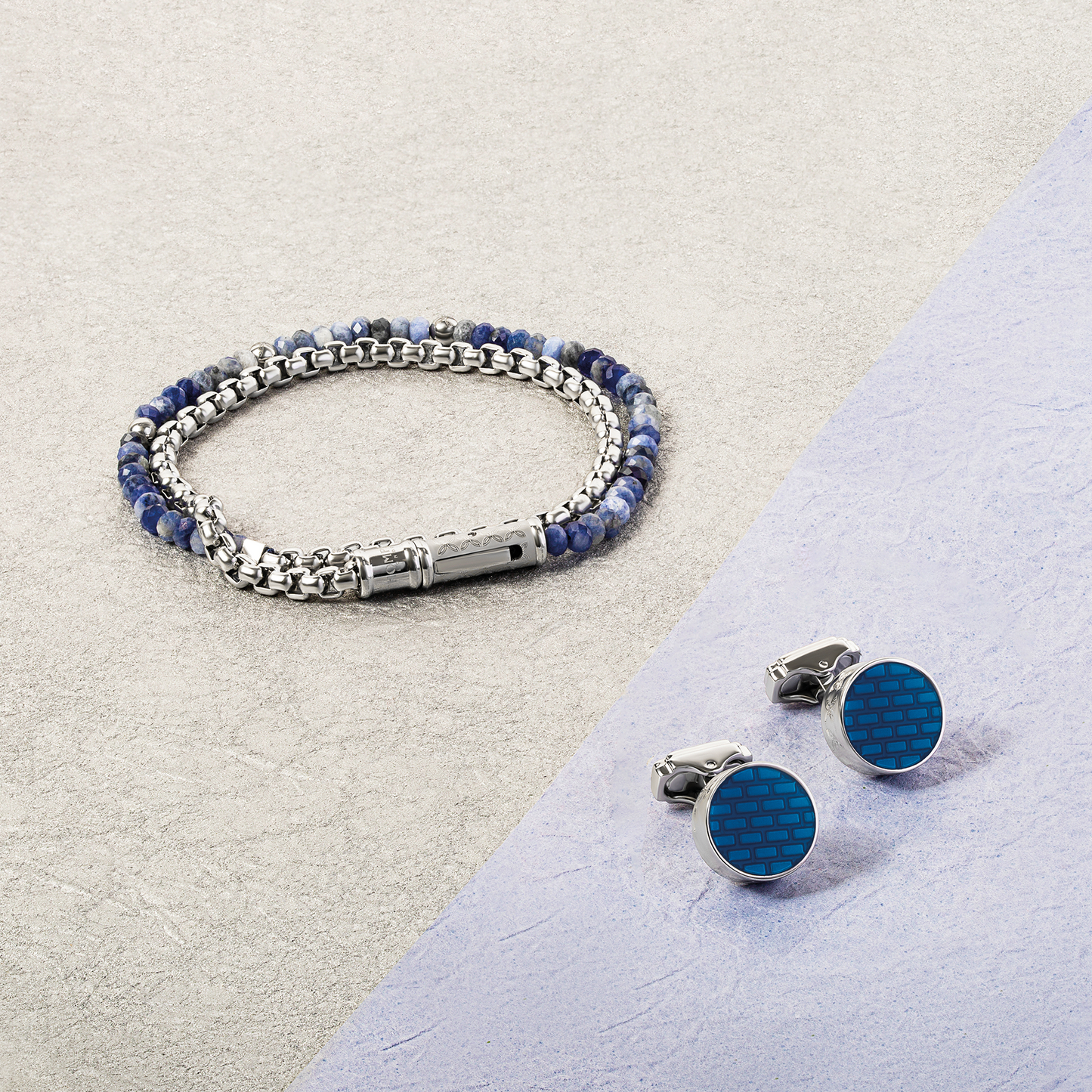 THOMPSON Brick CufflinksRhodium plated Base Metal With Blue Enamel