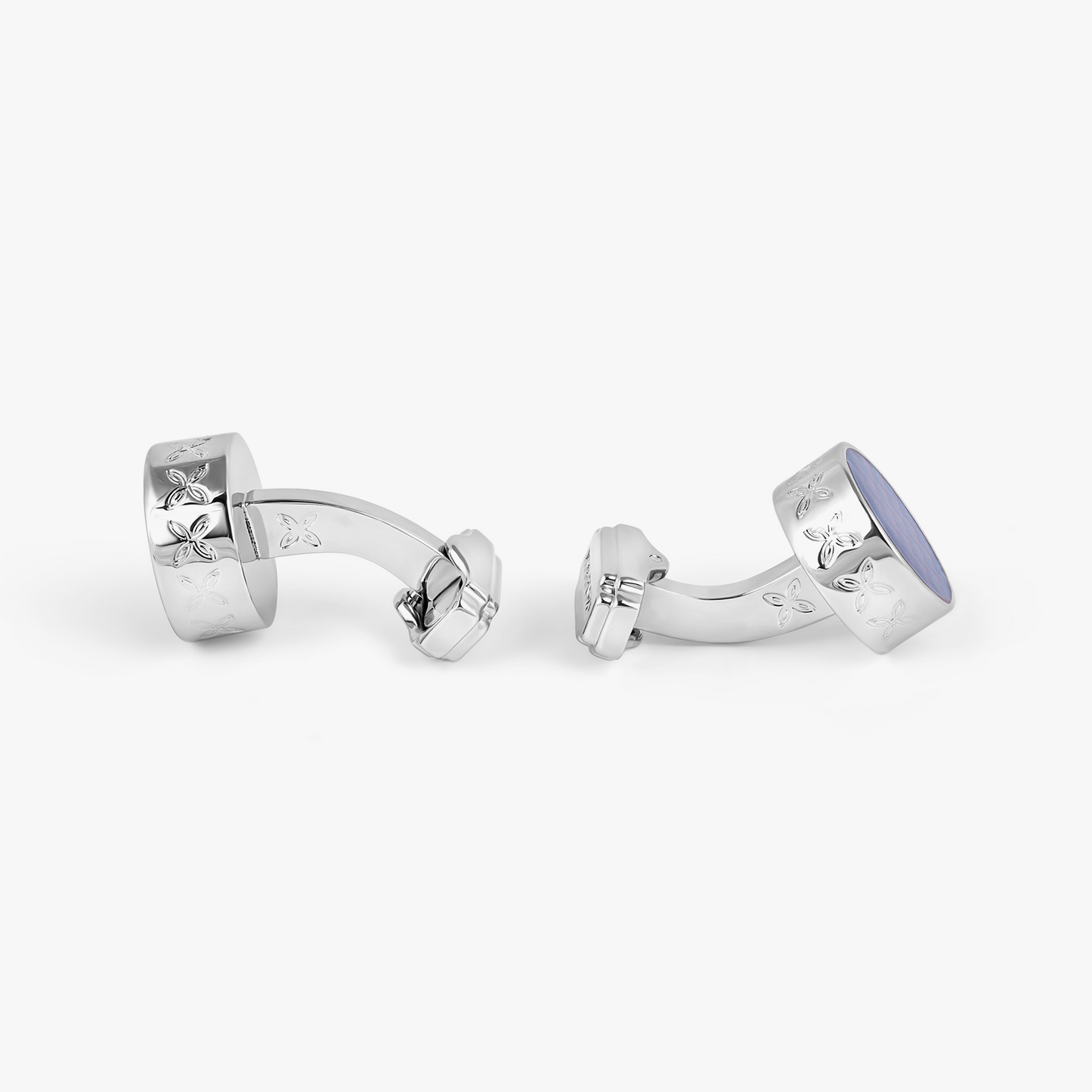 THOMPSON Brick Cufflinks In Rhodium plated Base Metal With Blue Enamel