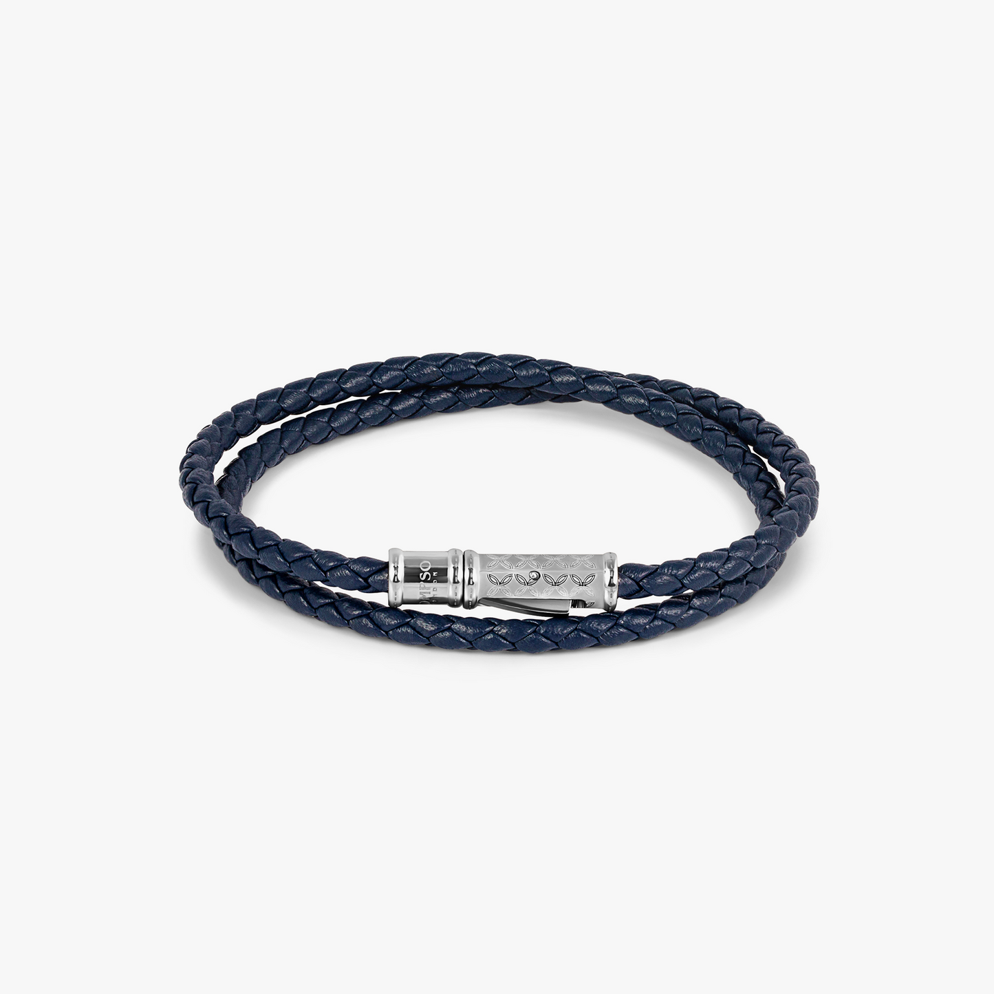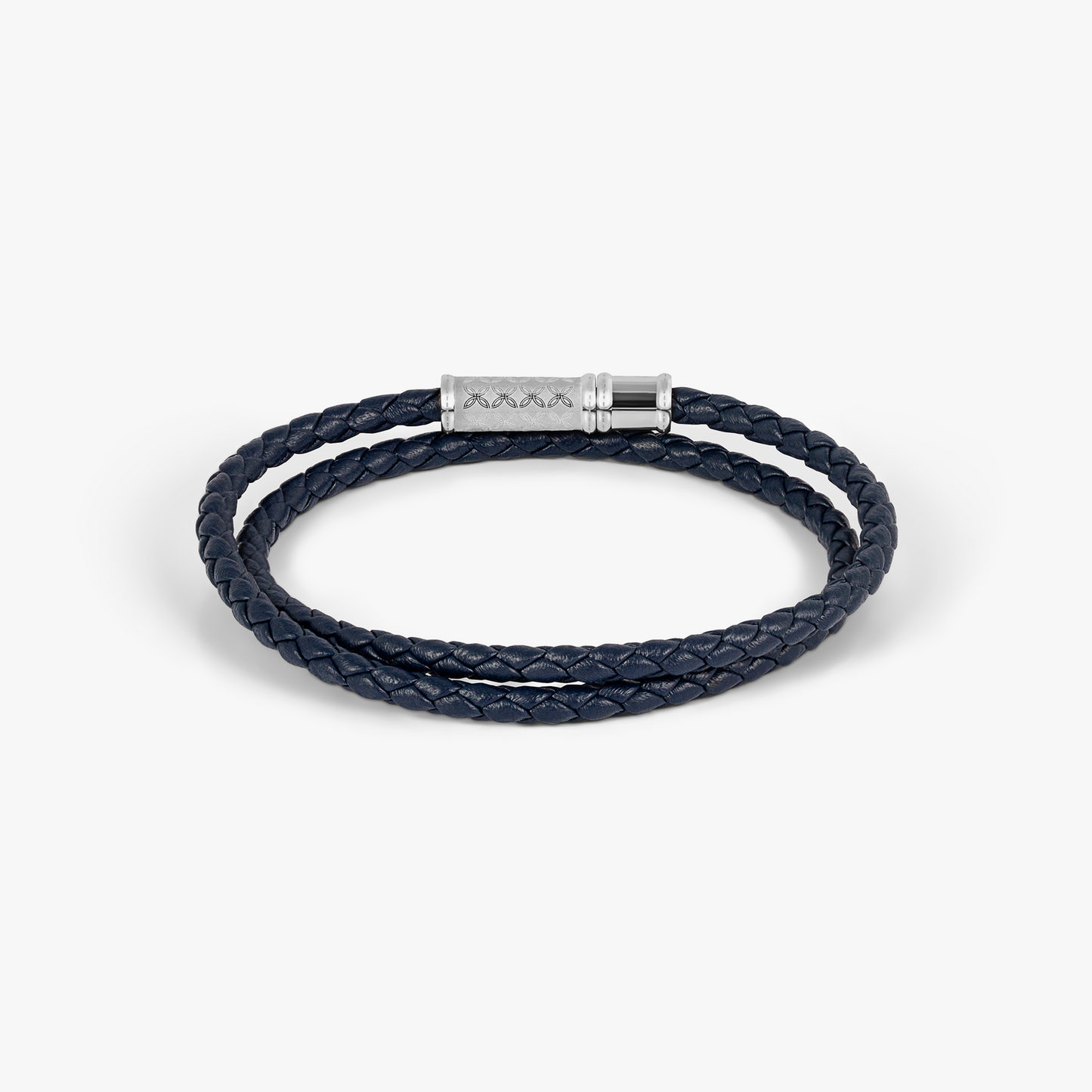 THOMPSON Lucky Clover Double Wrap Bracelet In Navy Leather