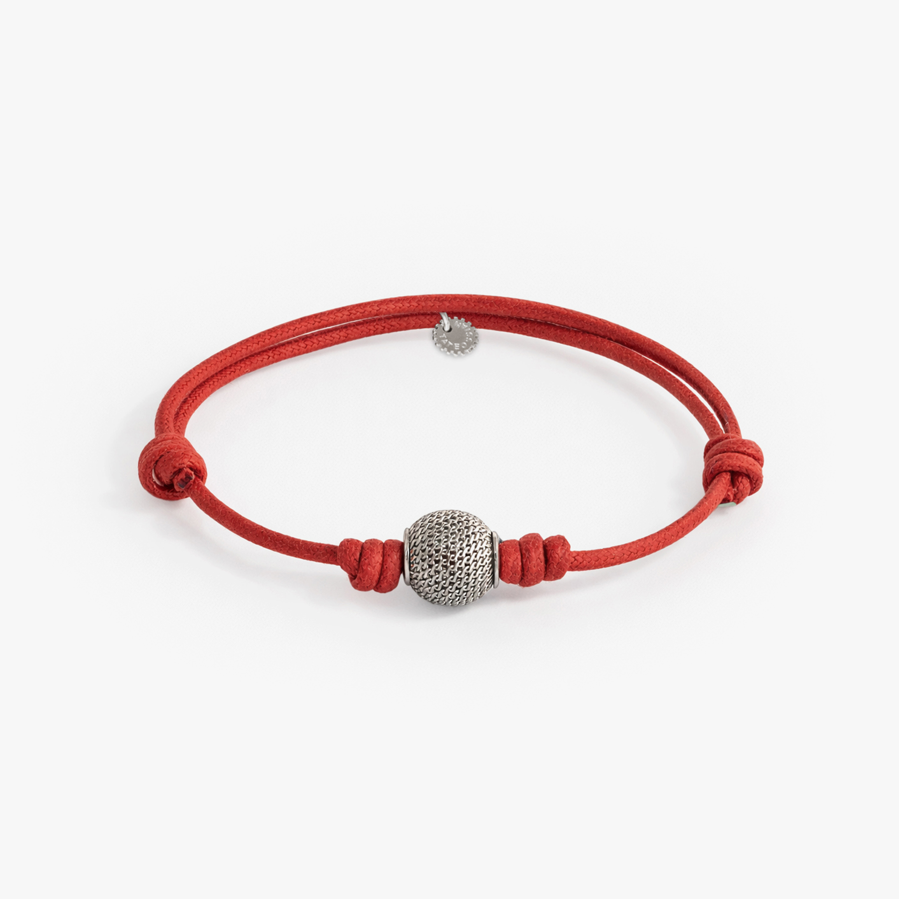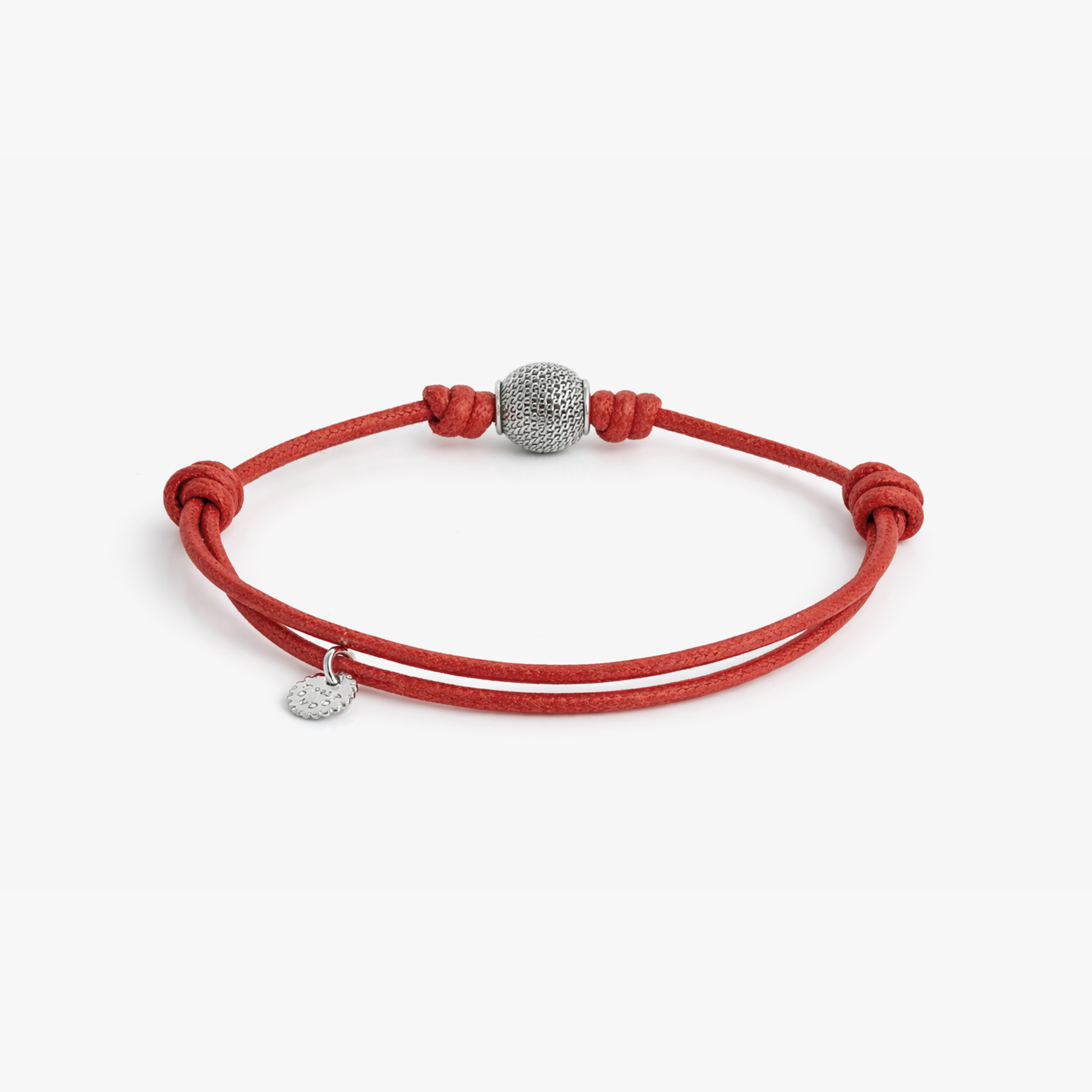 Valentine's Red Mesh Bead Cord Bracelet in Rhodium Plated