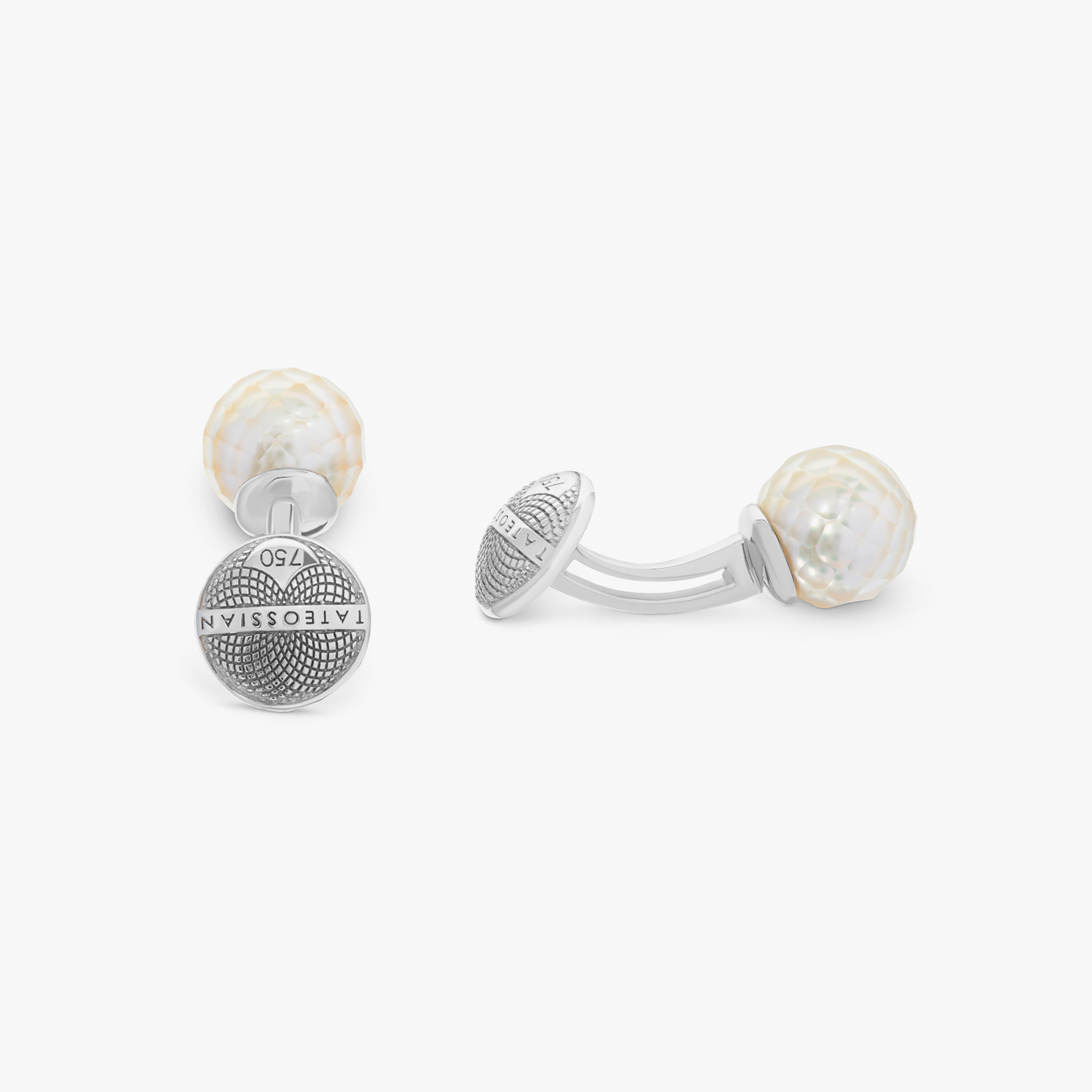 White faceted pearl cufflinks in 18k white gold